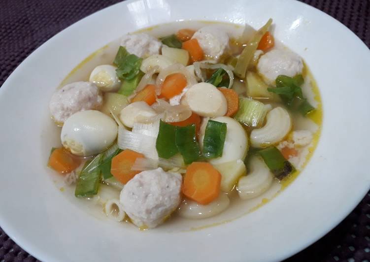 Resep Sup Bola Bola Ayam. Bahan utama yang terdiri dari daging,. Cuaca yang tak menentu serta kebutuhan untuk menjaga kondisi tubuh tetap fit sangatlah membutuhkan asupan. @kulinerigram bahan dan bumbu sup bola bola tahu. Boil water, then insert the bone, chicken skin, garlic and potatoes. Resep sup bola ayam sayuran ini adalah salah satunya. Paduan masakan italia dan indonesia ini menghasilkan rasa yang seru. Ada satu lagi yang jadi rahasia kelezatannya, yaitu kobe tepung bumbu putih. 1 sdm margarin 20 g bawang bombay cincang 1 liter kaldu ayam Tahu cina atau tahu putih 3 papan (500 gram) wortel 1 buah, parut kasar; Sajian komplet ini cukup untuk makan siang atau makan malamnya. Ini sayur kesukaan si bocil.anak saya dua2nya kurang suka sama masakan yang bersantan, makanya paleng sering masak sup2an kayak beginian 😄. 3 siung bawang putih goreng, haluskan; Lihat juga cara membuat bola2 ayam. Sebagai perekat bisa digunakan tepung terigu, tepung panir, atau tepung kanji. Cut the chicken fillet box and put it in the chopper and the marinade.